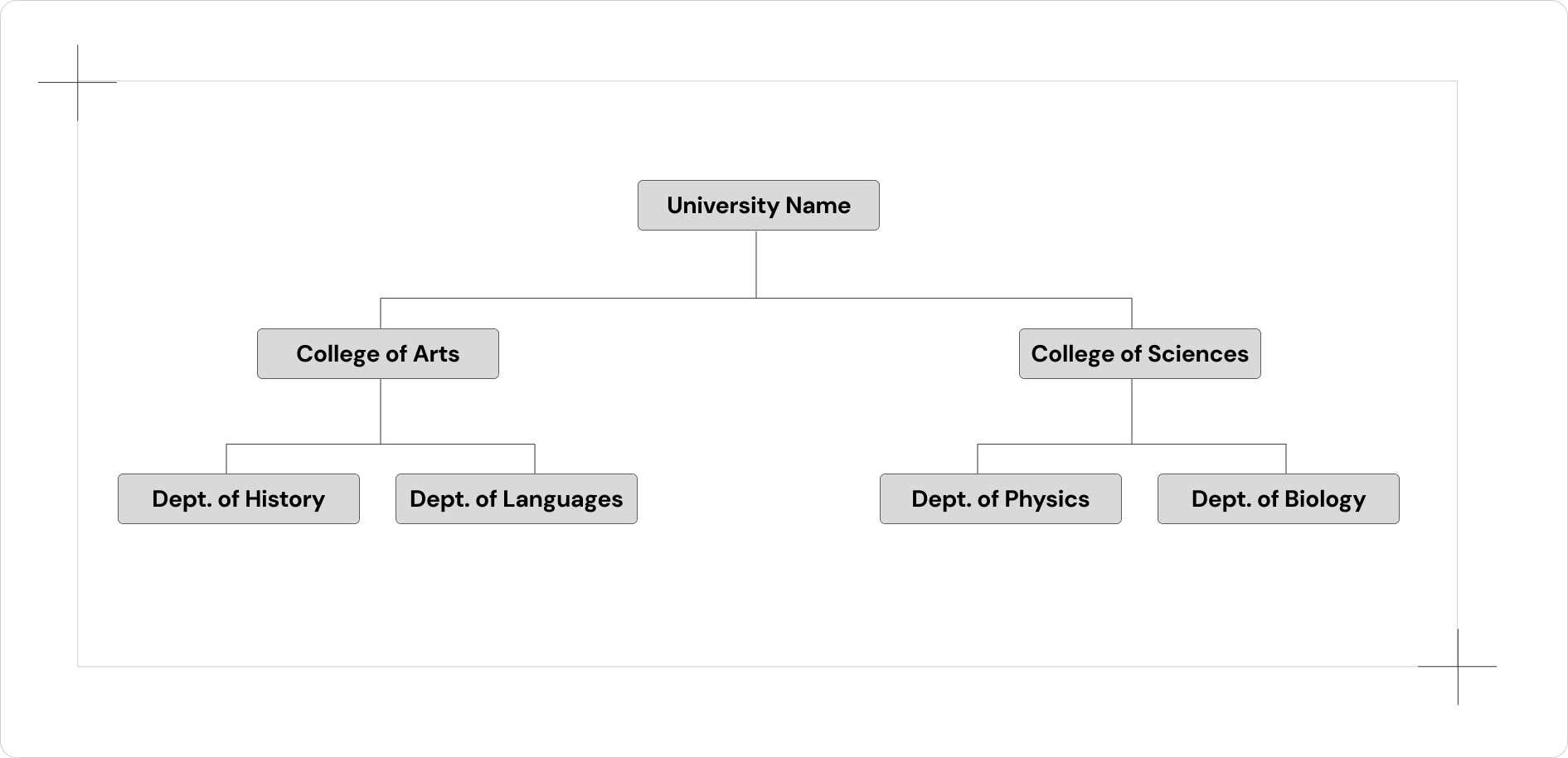 Organisation Trees solve this. Now, you can build a structure that aligns perfectly with how your university operates in the real world. For example: